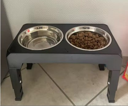 Dog Feeder Bowls Adjustable Stand with Double Stainless Steel